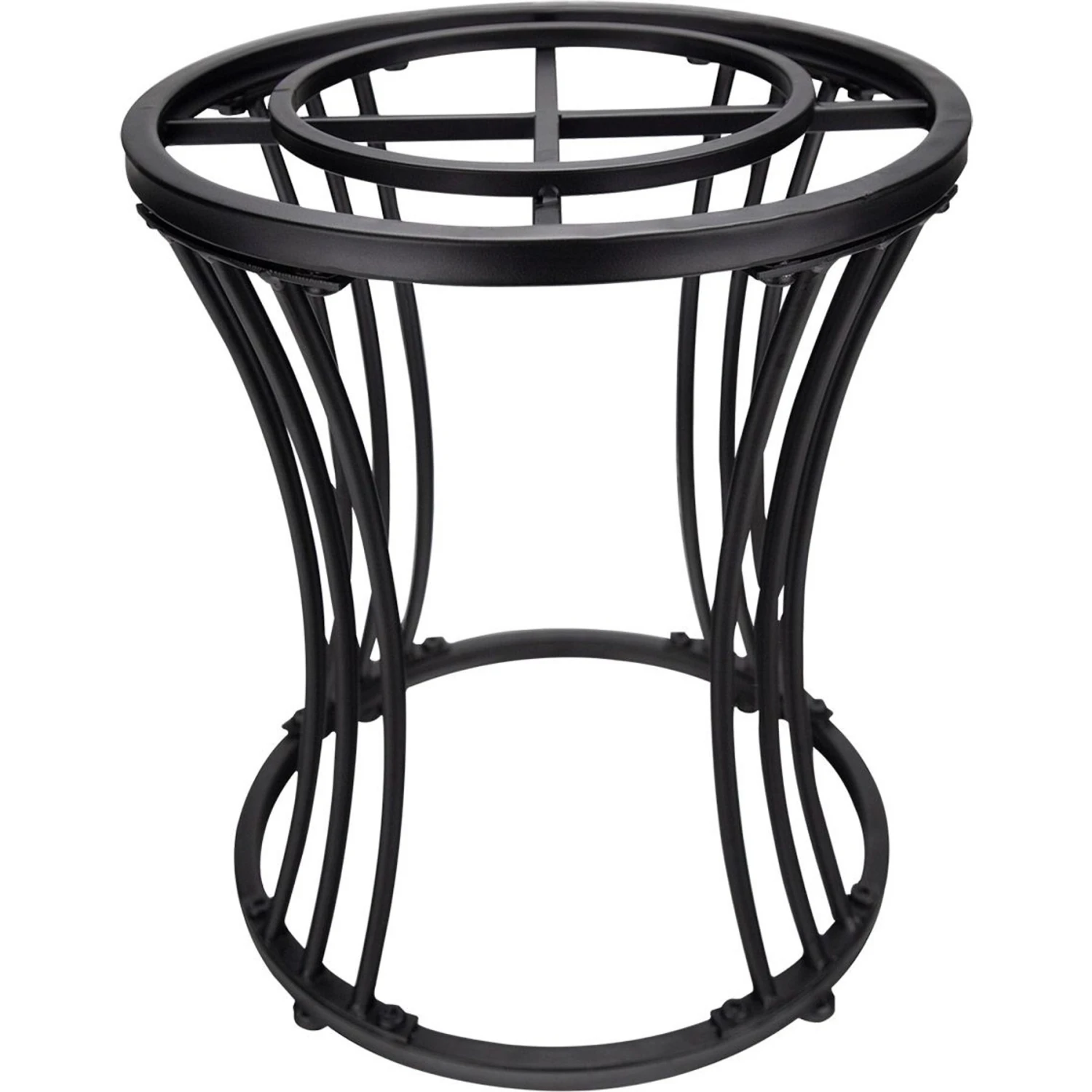 - Durable iron construction features a triple powder-coated finish.