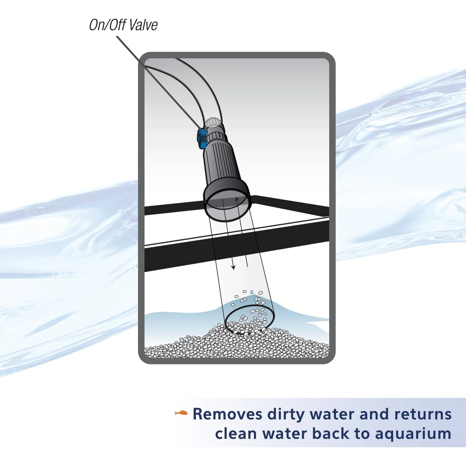 - Includes 11-inch gravel tube with water-flow valve for simple on/off.