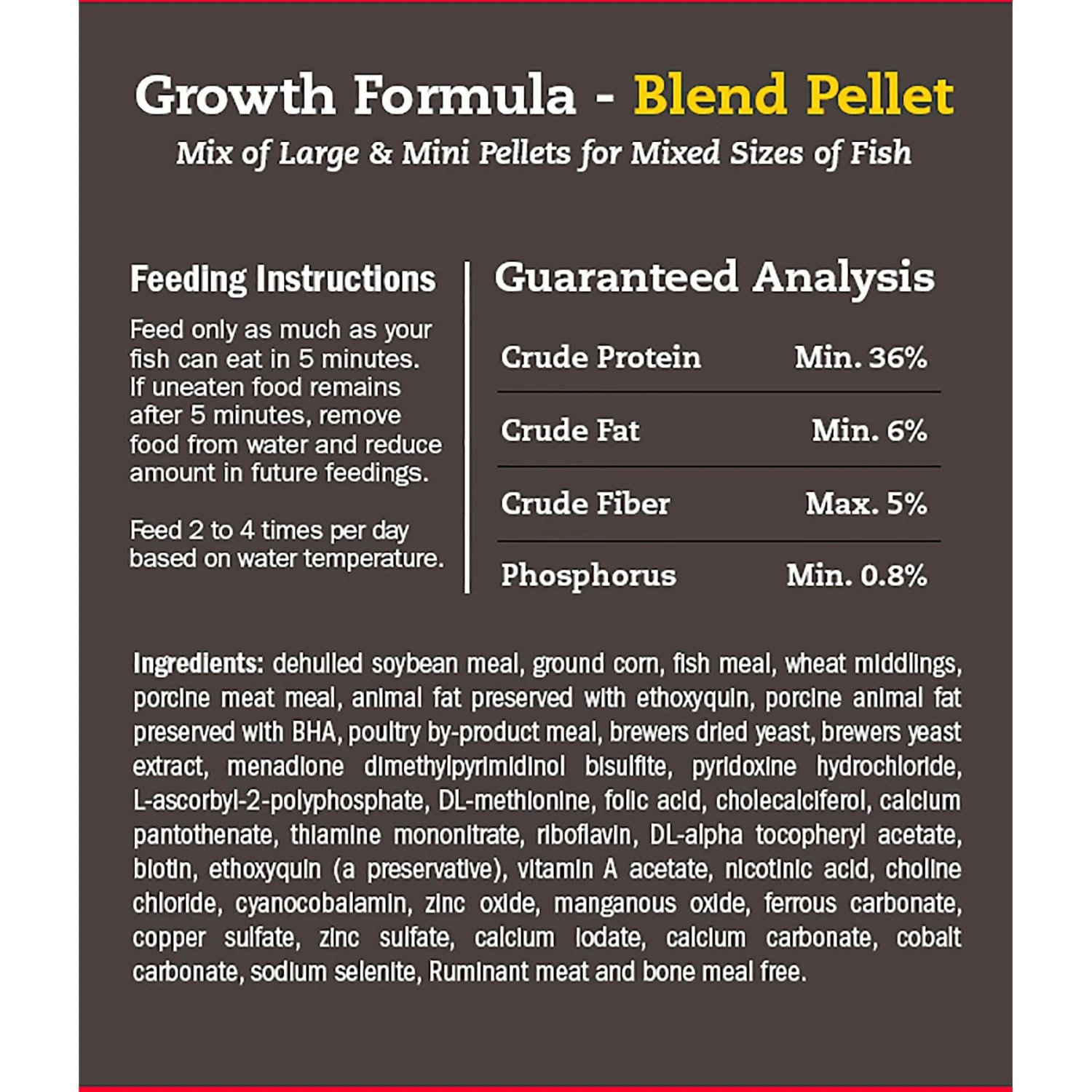 - Blend Pellet formula contains a 50/50 mix of large (3/16”) and small (1/8”) pellets to feed fish of various sizes.