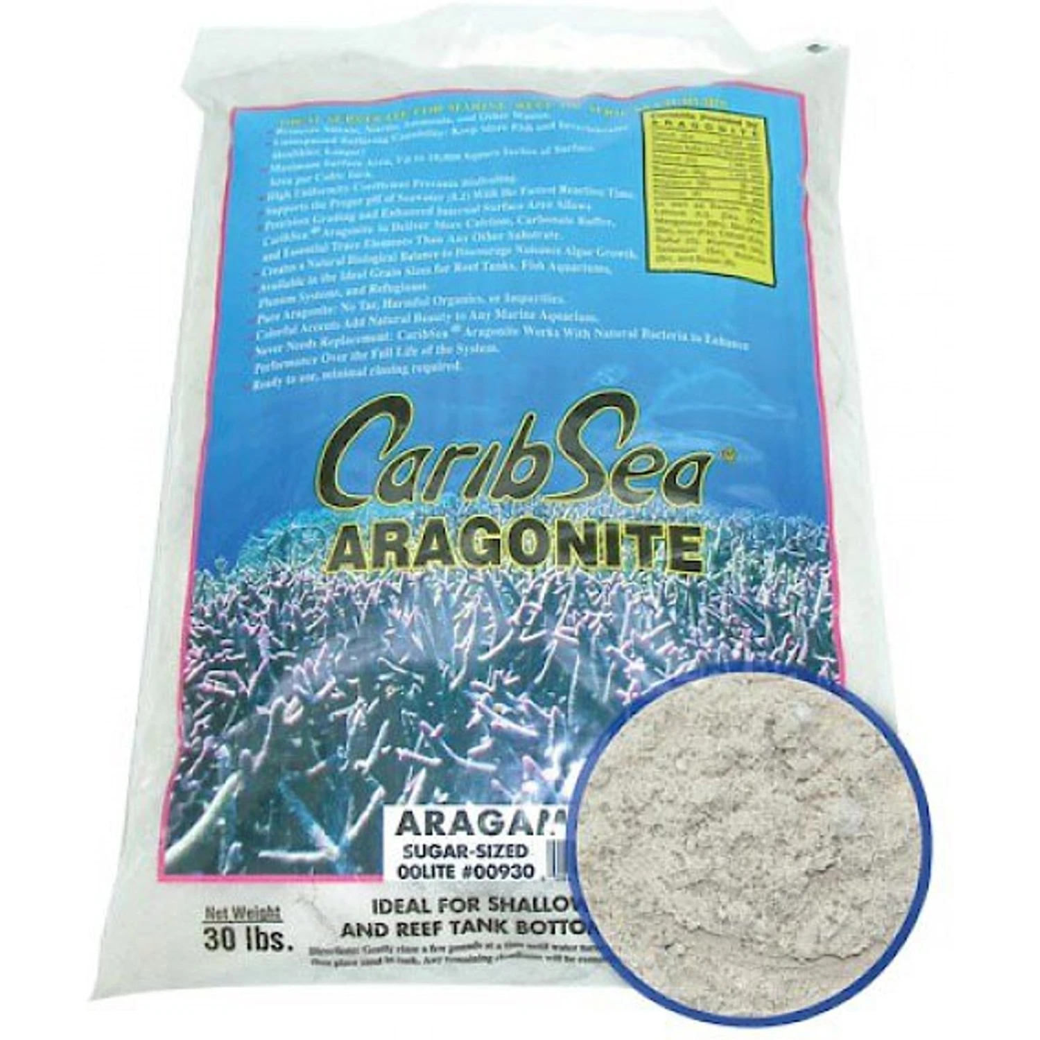 CaribSea Aragamax Sugar-Sized Aquarium Sand, 30-lb Bag