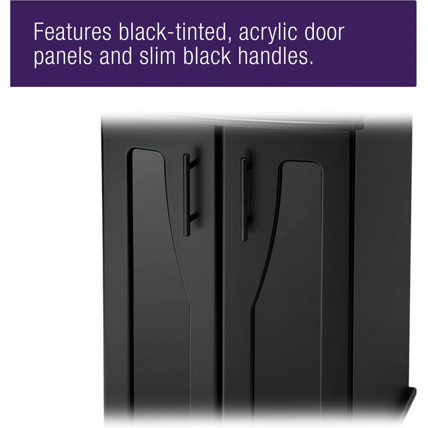 - Features a door with a black tinted acrylic panel for added elegance and a slim handle.