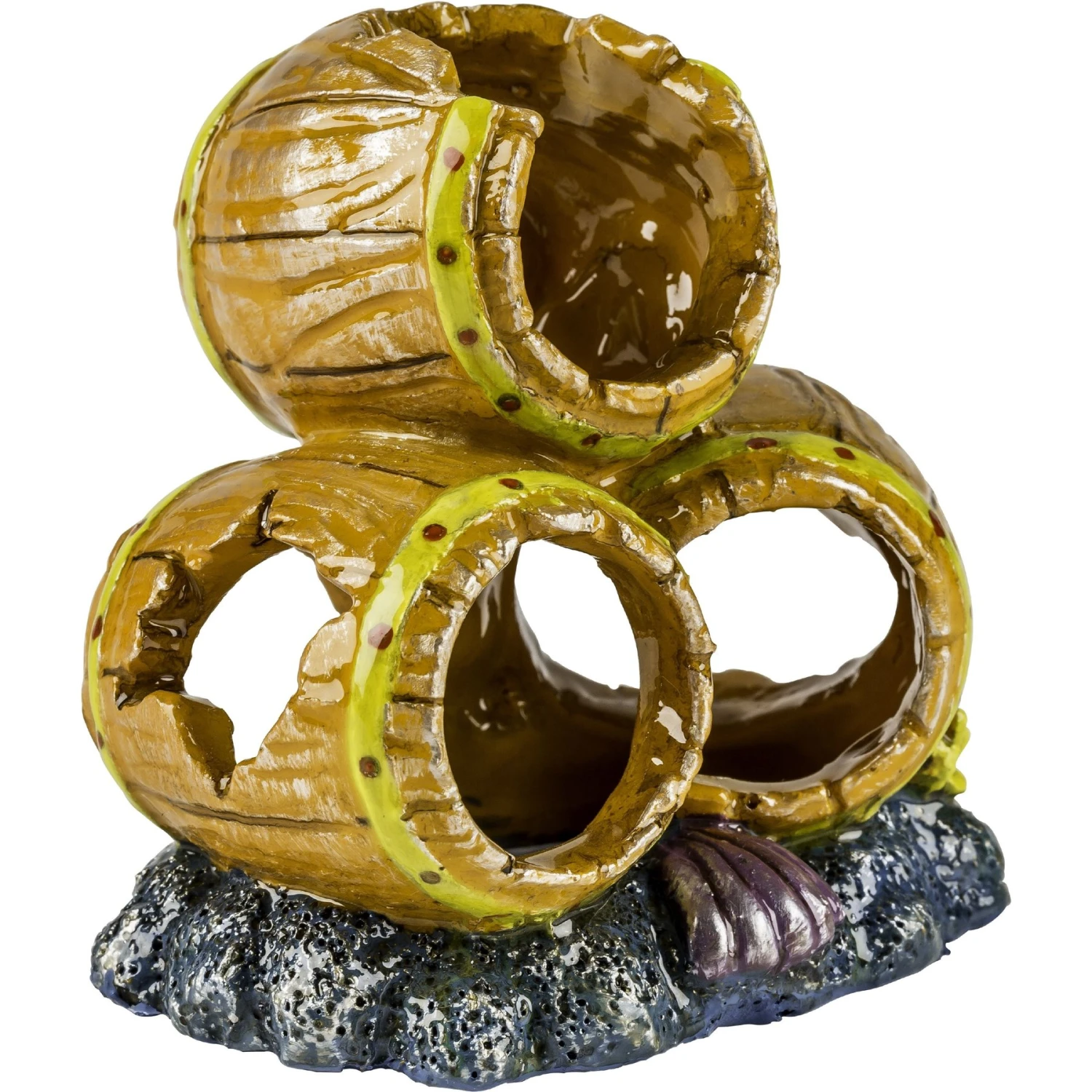 - Fun, detailed sunken barrel design adds undersea charm to your tank.