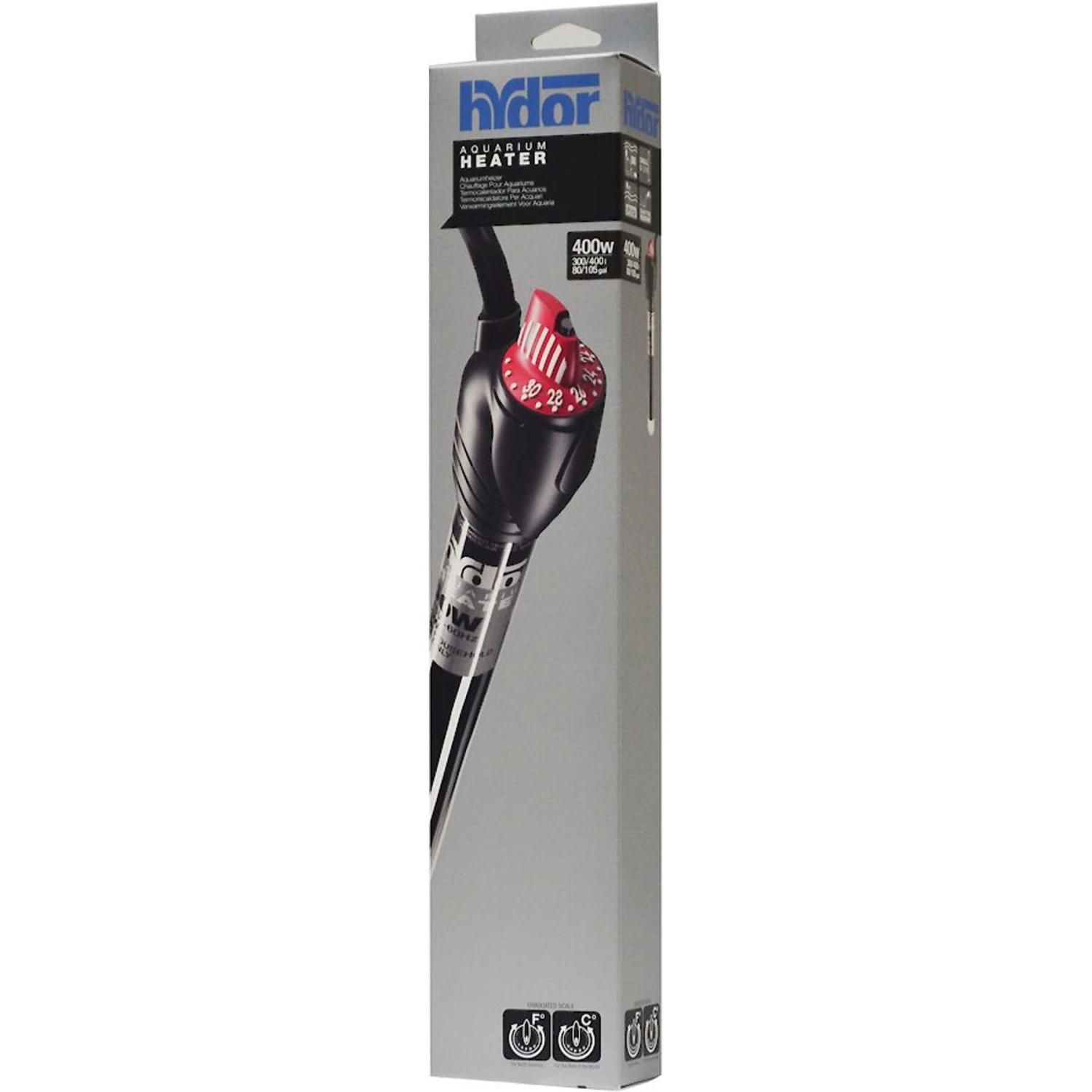 - A fully submersible, shatter-proof glass aquarium heater.
