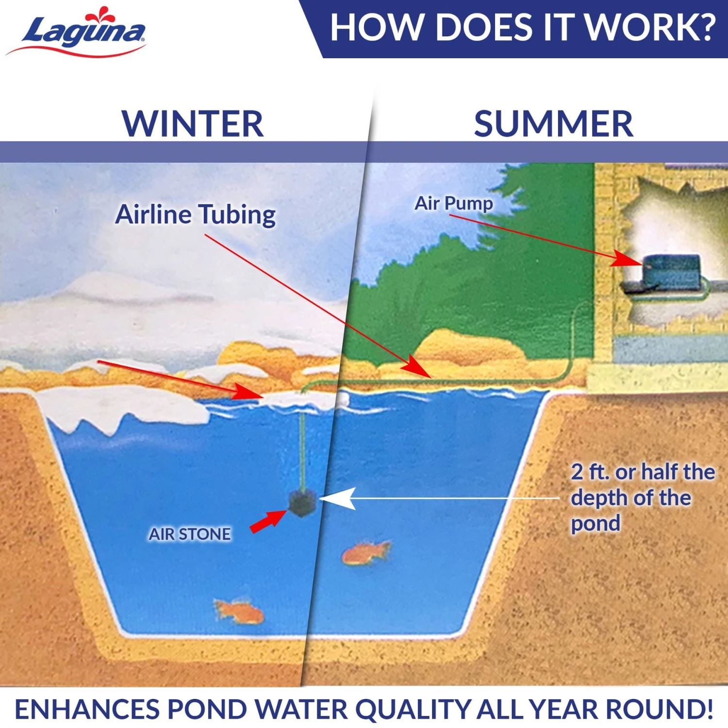 - Kit delivers supplemental aeration in the summer to improve pond water quality.