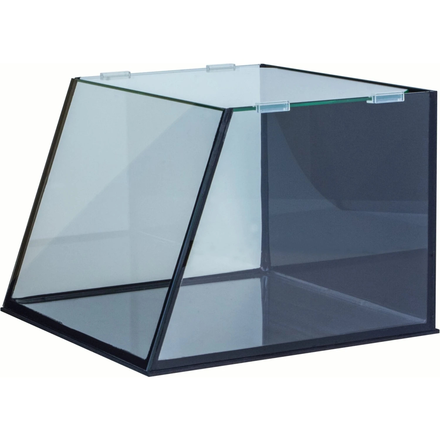 - Patented design features an angled front panel so you can view your fishy friend and his wondrous home without bending or squatting.