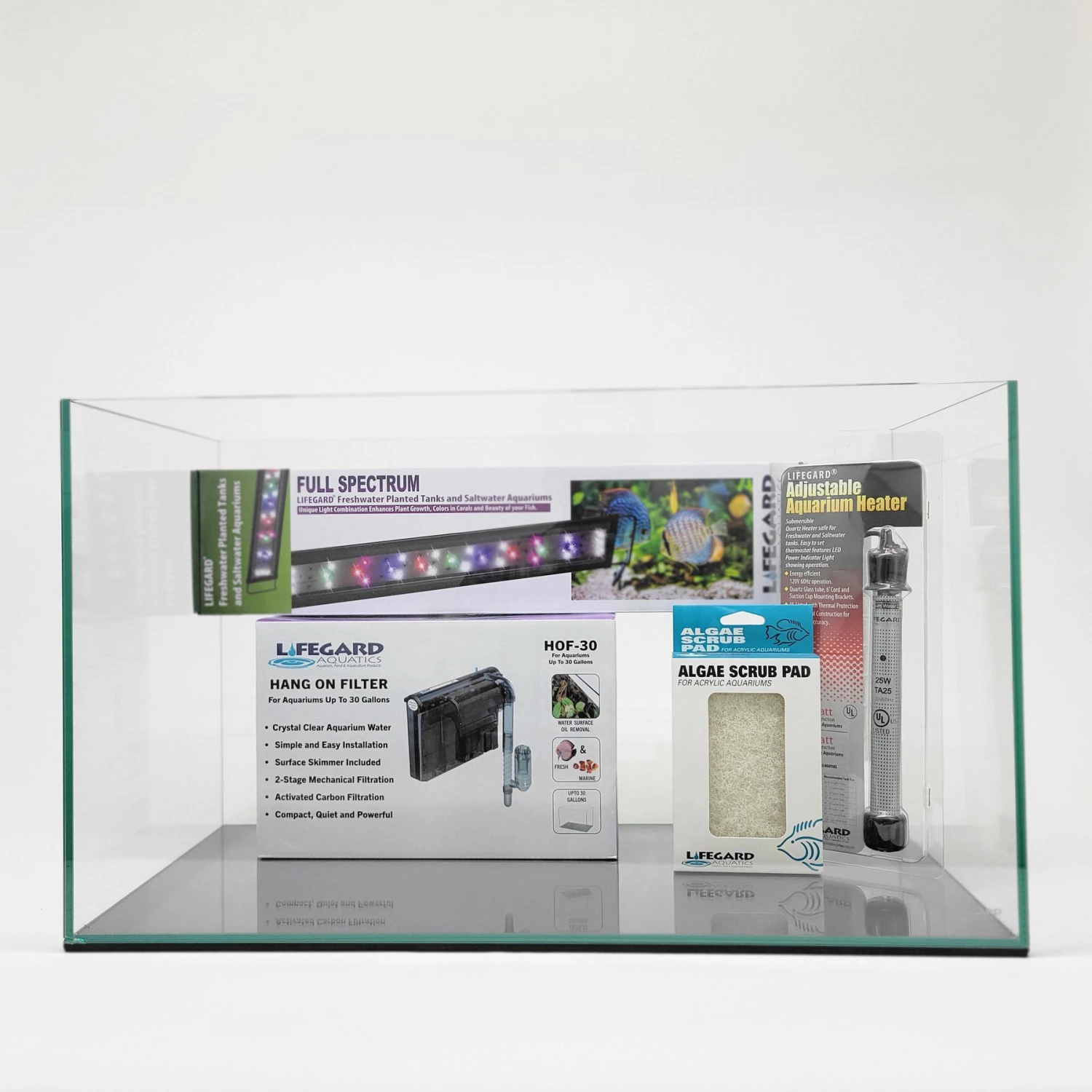 Lifegard Clear Glass Rimless Aquarium With HOF-3 Hang On Filter, 5-mm, 15-gal