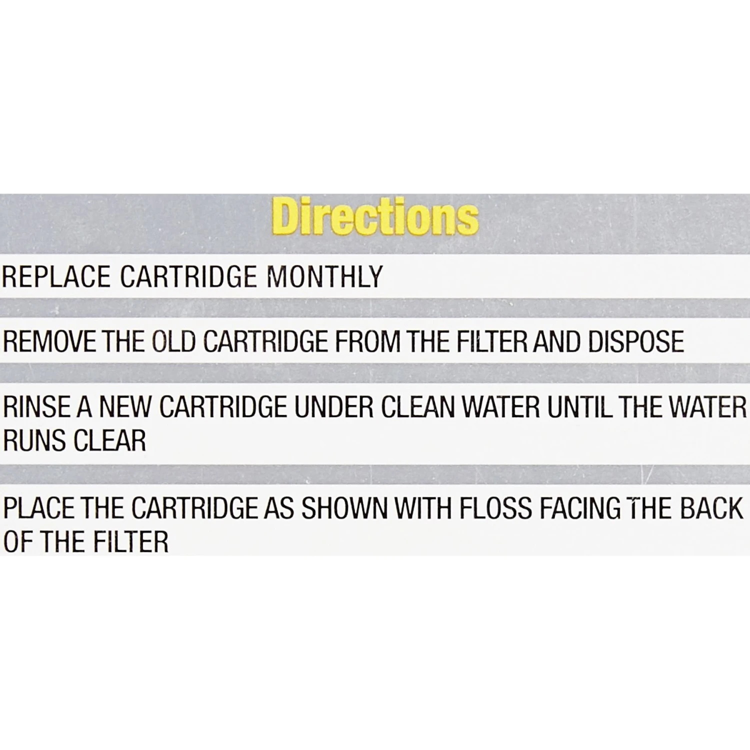 - Filter cartridge traps debris and removes odors and discoloration, providing mechanical as well as chemical filtration.