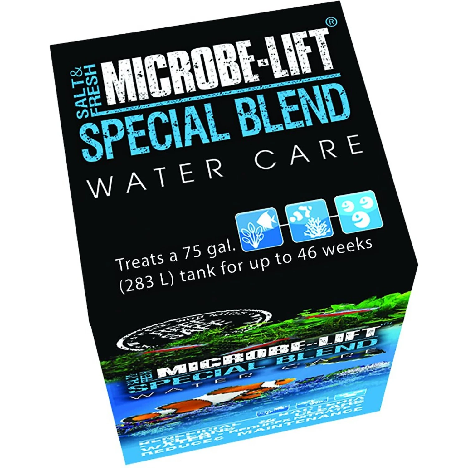 - Works to reduce harmful ammonia and nitrate levels caused by natural waste and decomposition.