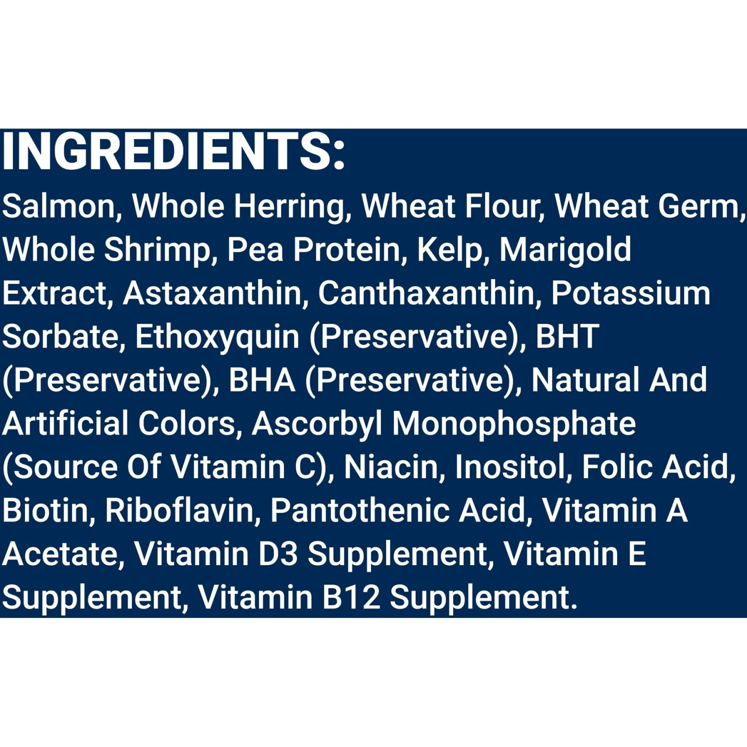 - Whole salmon is the first ingredient in this recipe—it also features quality Alaskan halibut, krill and shrimp for lots of healthy protein.