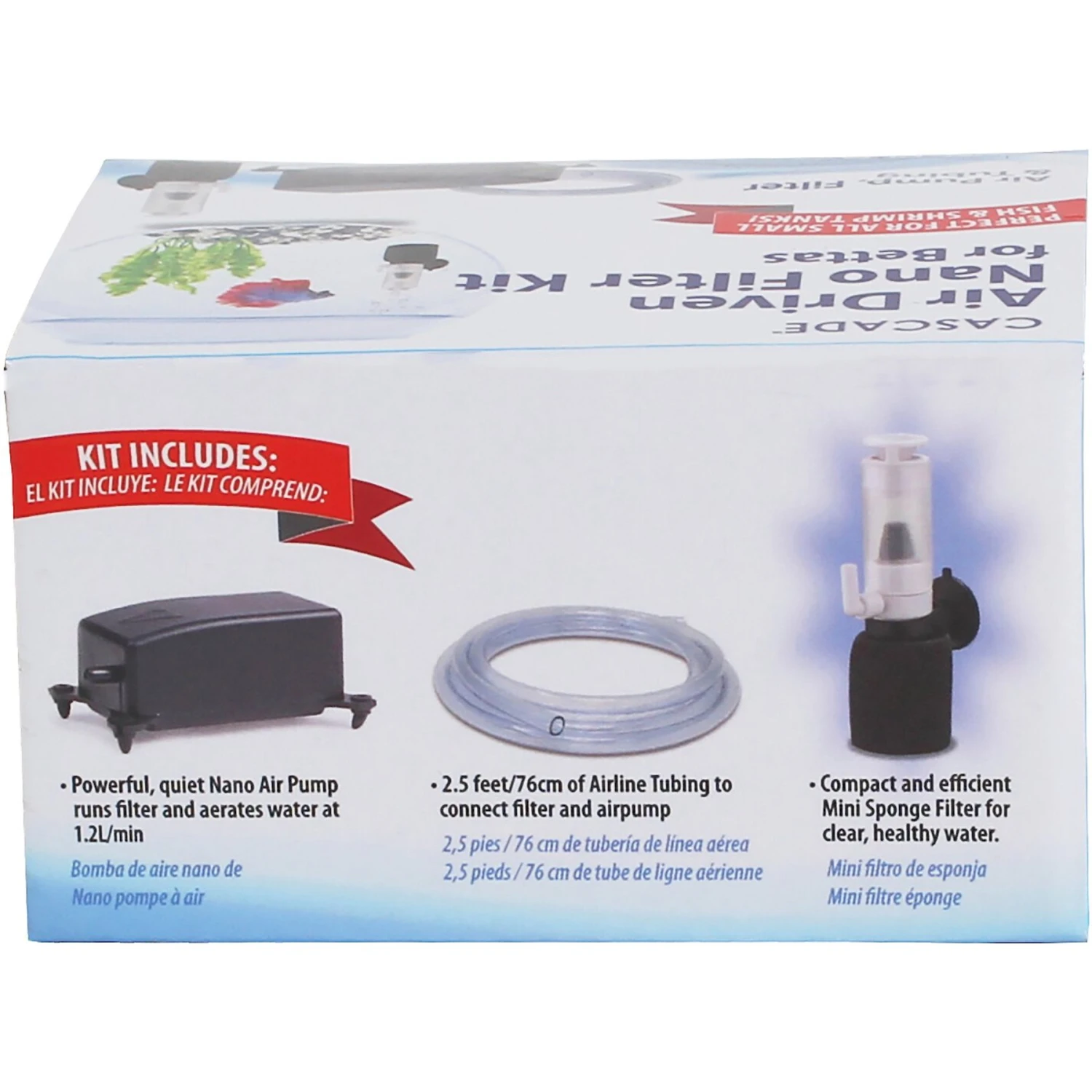 - The Cascade Mini Sponge Filter circulates continuous, clean water back into the tank, traps any large pieces in the water and boosts the colonization of healthy bacteria.