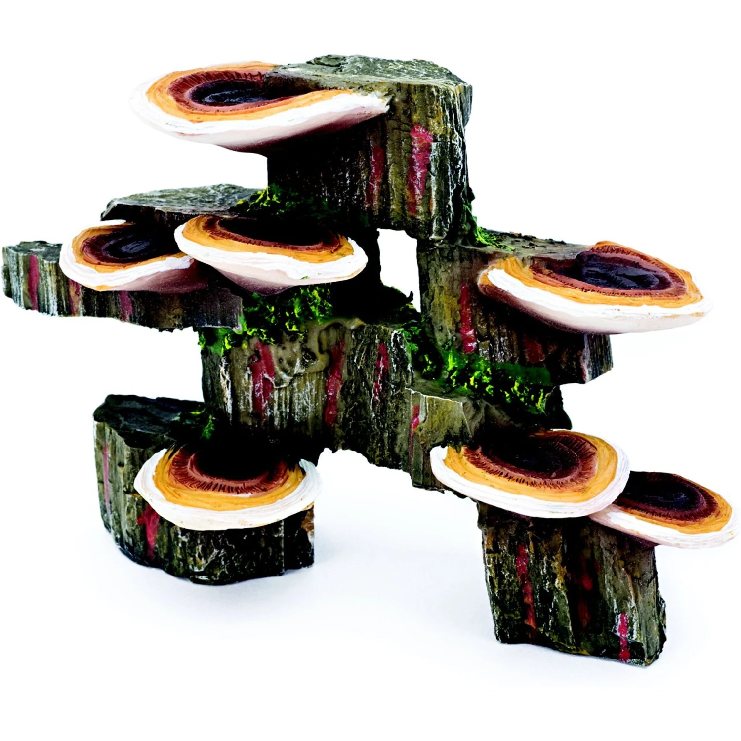 Penn-Plax Deco-Replicas Tree Trunk With Shelf Mushrooms Fish Ornament, Small, Brown