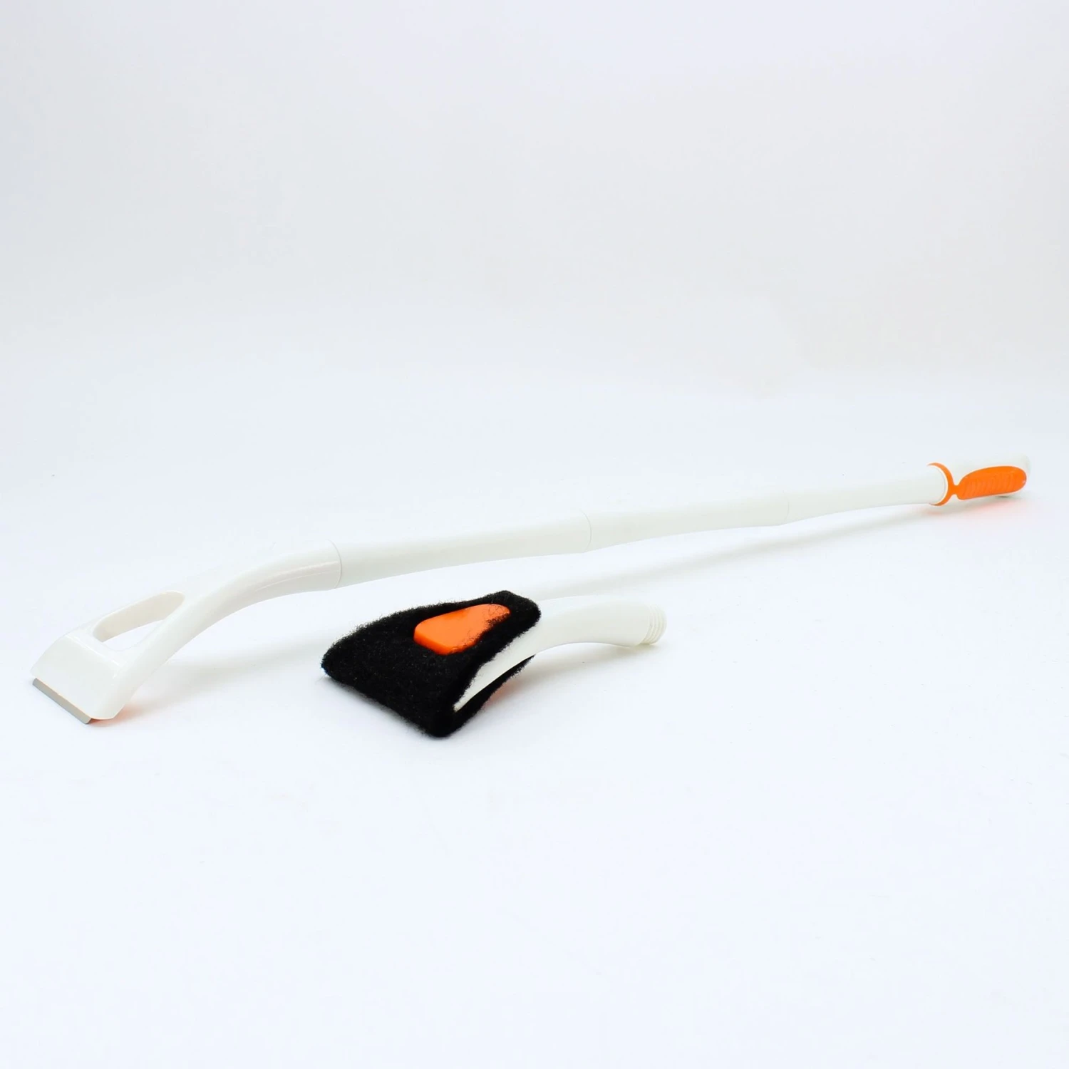 - Kit includes: 1 handle, 1 main body pole, 2 pole extensions, 1 stainless steel scraper head, and 1 sponge scrubber head.