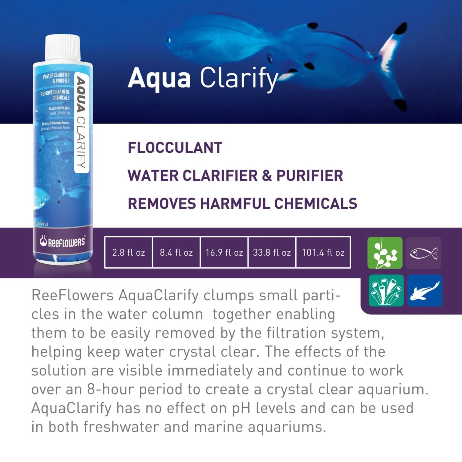 Reeflowers AquaClarify Fish Aquarium Water Conditioner