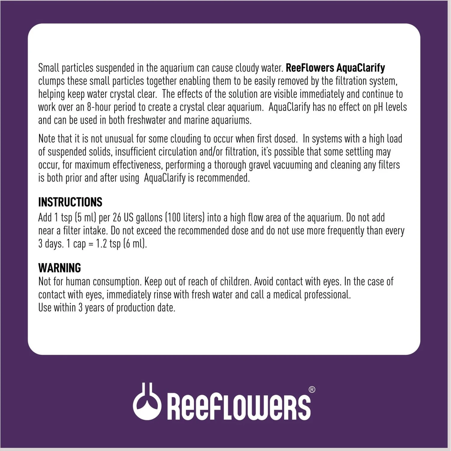 - Clumps particles together so your filtration system (sold separately) can better remove them.