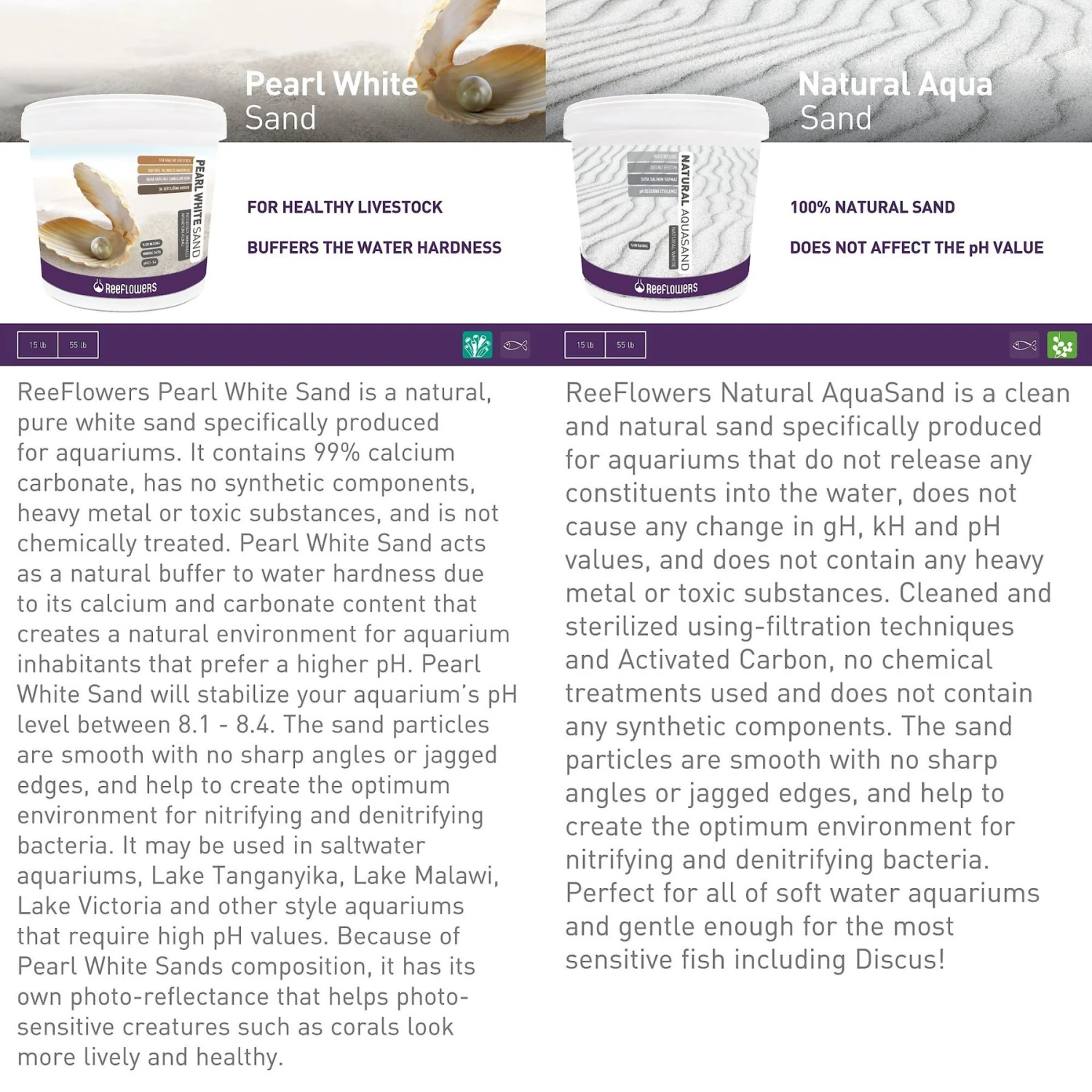 Set your scaly sidekicks up with a new substrate using Reeflowers Pearl White Aquarium Sand. This 0.5-1 millimeter (mm) pure white sand is specifically produced for use in aquariums. It contains 99% calcium carbonate without any synthetic components, heavy metals or toxic substances. This white aquarium sand is crafted to act as a buffer to water hardness and help create an environment with a higher pH level. It features smooth particles without any jagged edges and can be used in saltwater tanks to help photo-sensitive creatures such as coral to look more lively. This is also great for use with Aquatic Turtles, Terrestrial Turtles, Tortoises, Aquatic Amphibians, Terrestrial Amphibians, Invertebrates, Lizards, and Snakes.