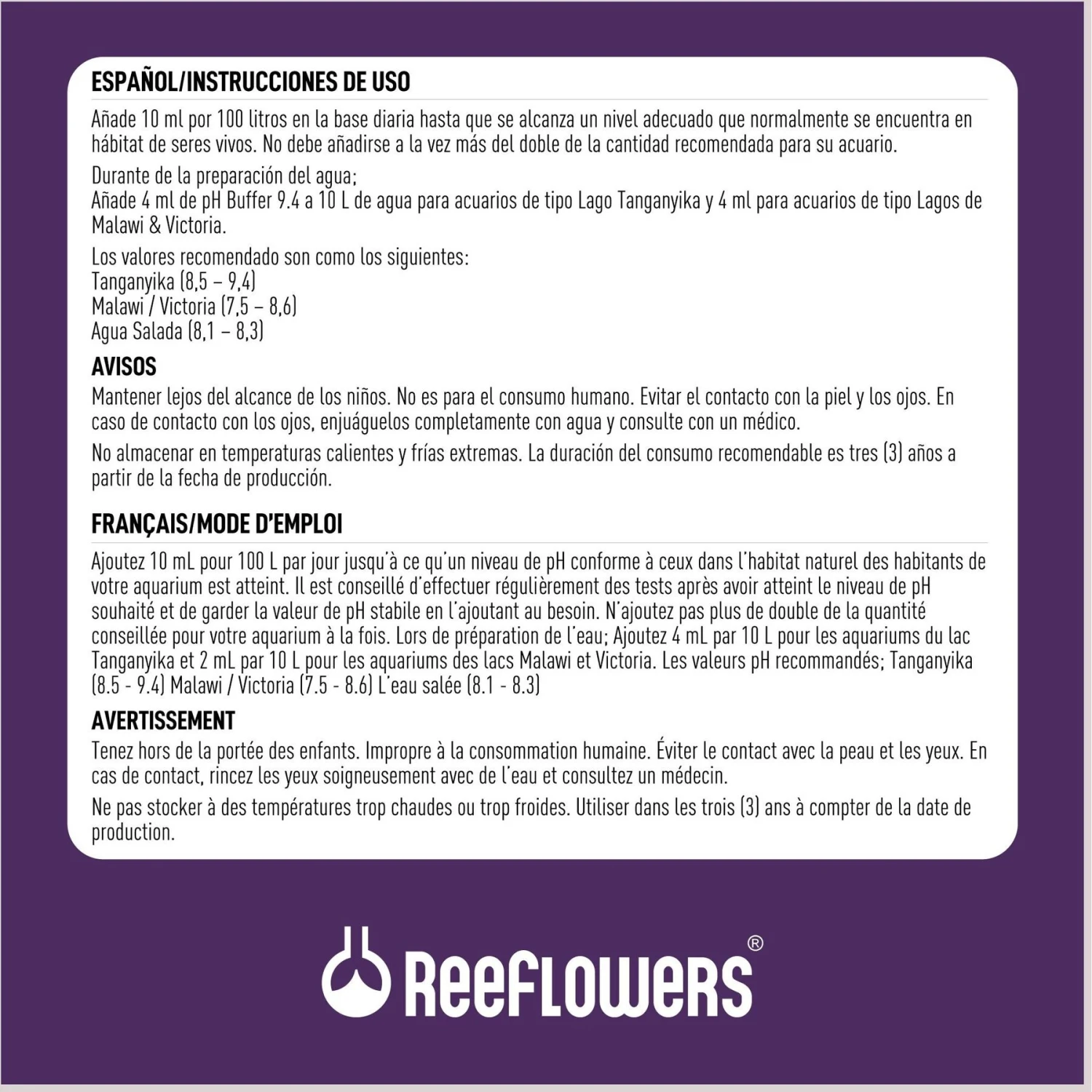 Keep your tank healthy, thriving and beautiful with Reeflowers pH Buffer 9.4 Fish Aquarium Water Conditioner! Crafted to help maintain a high pH level, make sure to use this formula with each water change to stabilize the pH. This creates a more natural environment, perfect for your South American cichlids, while assisting with skeletal development. Use it regularly in your freshwater or saltwater tank.