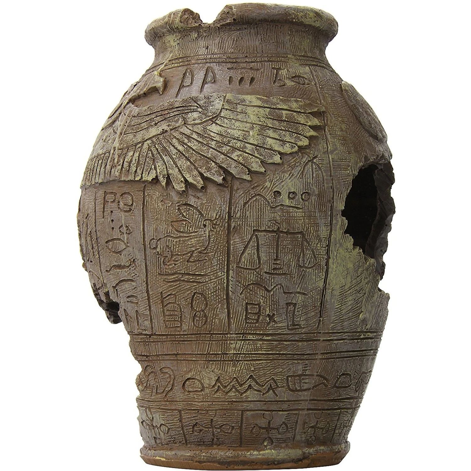 - Adds a touch of style and allure to any aquarium set up with ancient vase design.