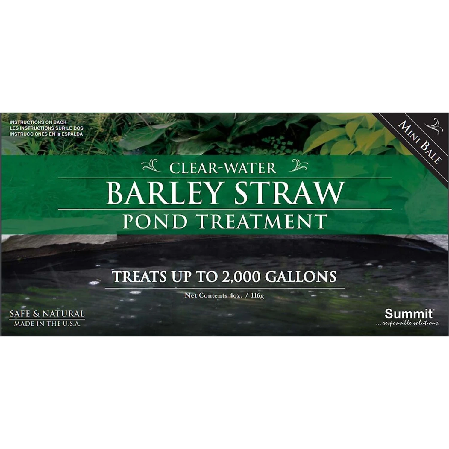 See things more clearly with the Summit Clear-Water Barley Straw Pond Treatment. The barley straw works to naturally keep aquariums and fountain water clear—without the need for synthetic chemicals. As it slowly decays, byproducts are released that aid in maintaining water clarity, which are harmless to fish and other plants in the pond. Just drop it in, and enjoy the results! Barley straw may be used at any time, but best results have been reported when starting in early spring when the water temperature is low. Bales should remain floating for maximum exposure to sunlight and oxygen, which aids in the decomposition process and accelerates the pond clearing benefits.