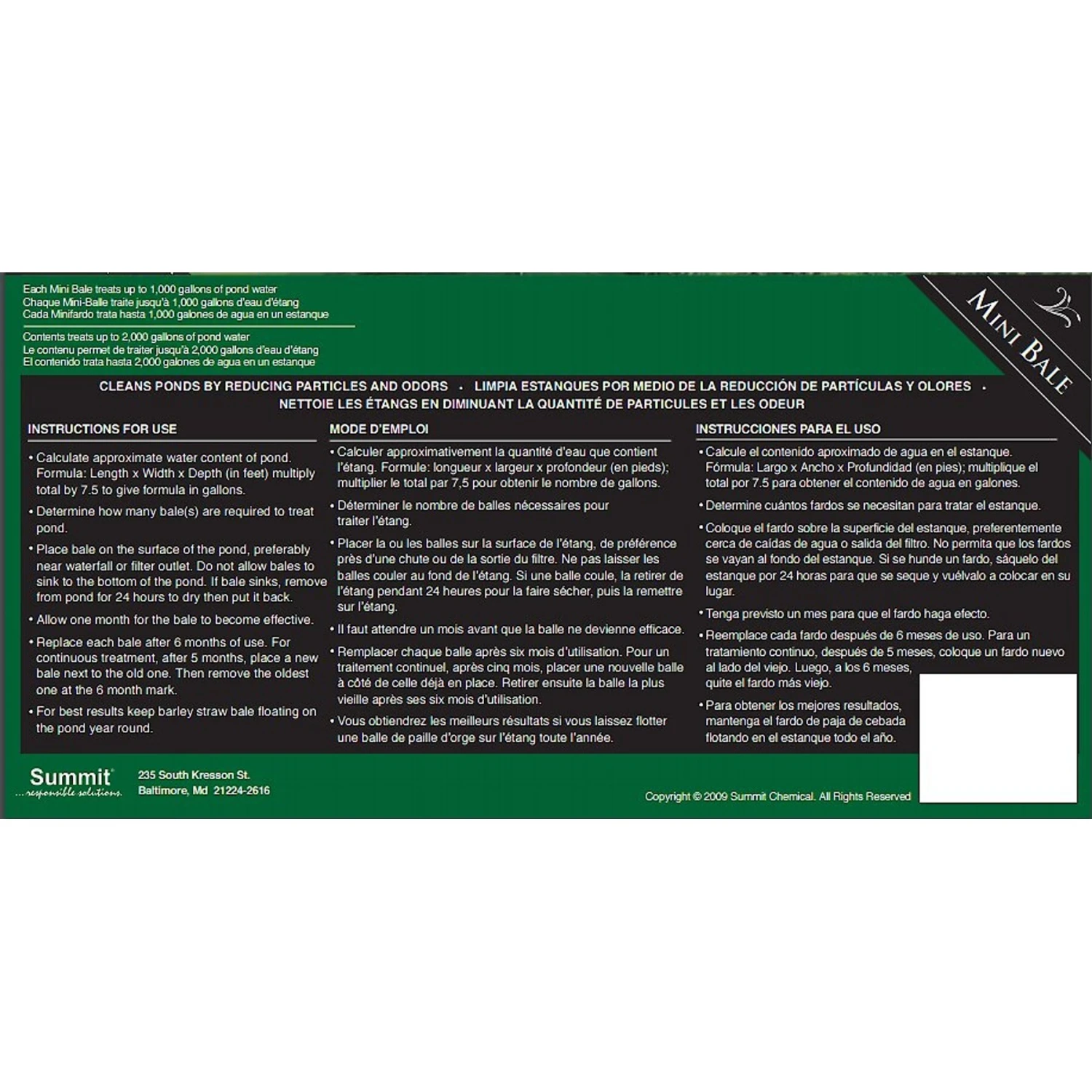 - Place bale on the surface of the pond, preferably near waterfall or filter outlet. Do not allow bales to sink to the bottom of the pond. If bale sinks, remove from pond for 24 hours to dry and then put it back.