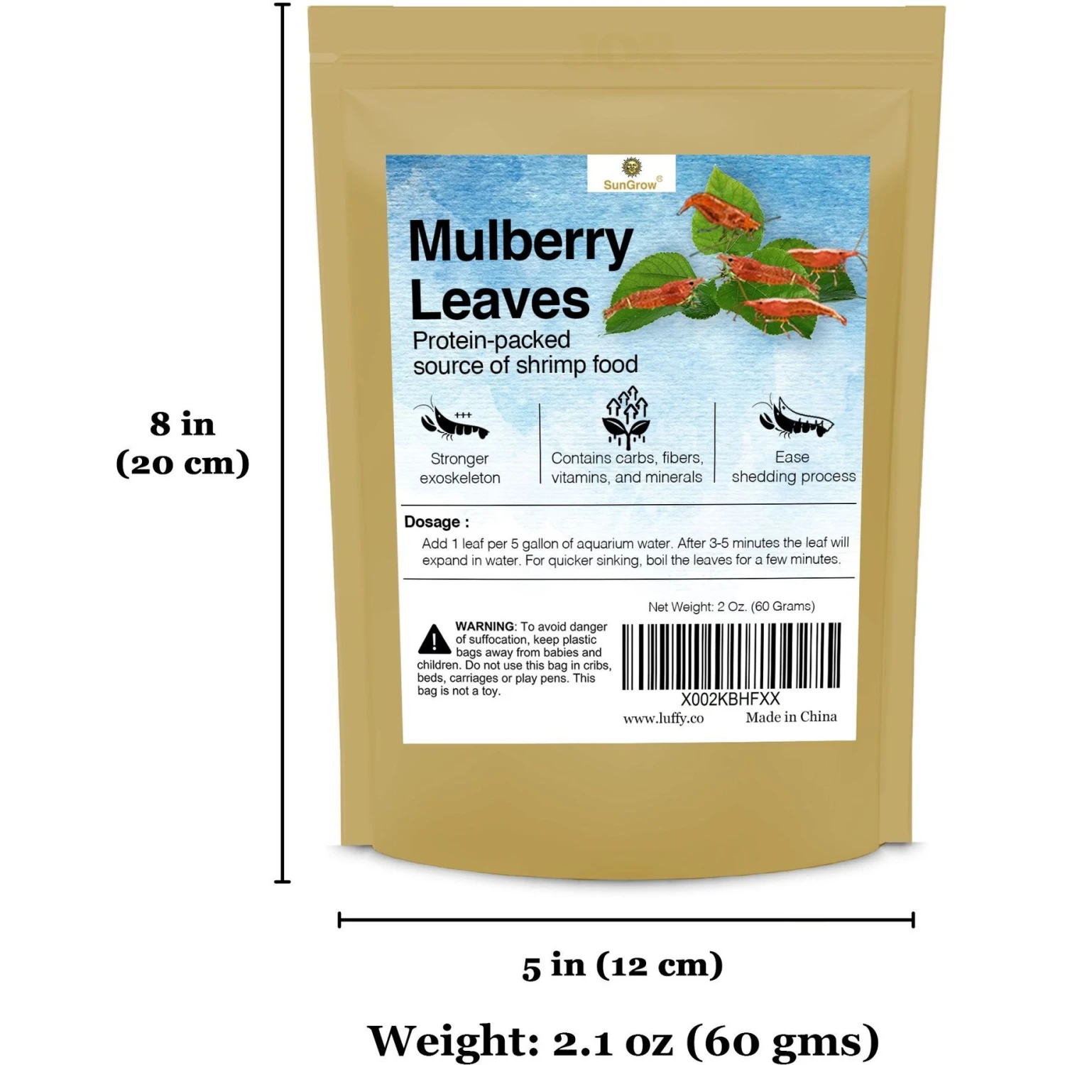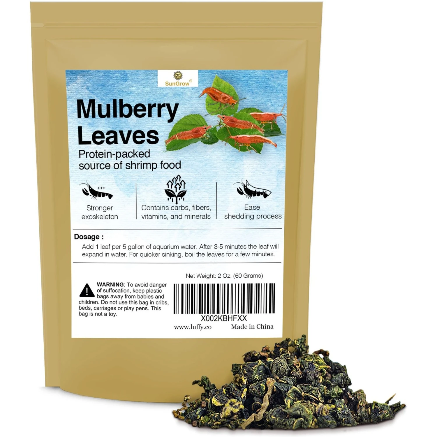 SunGrow Dried Mulberry Leaves Growth Supplement For Freshwater Aquarium Snail & Cherry Shrimp Food