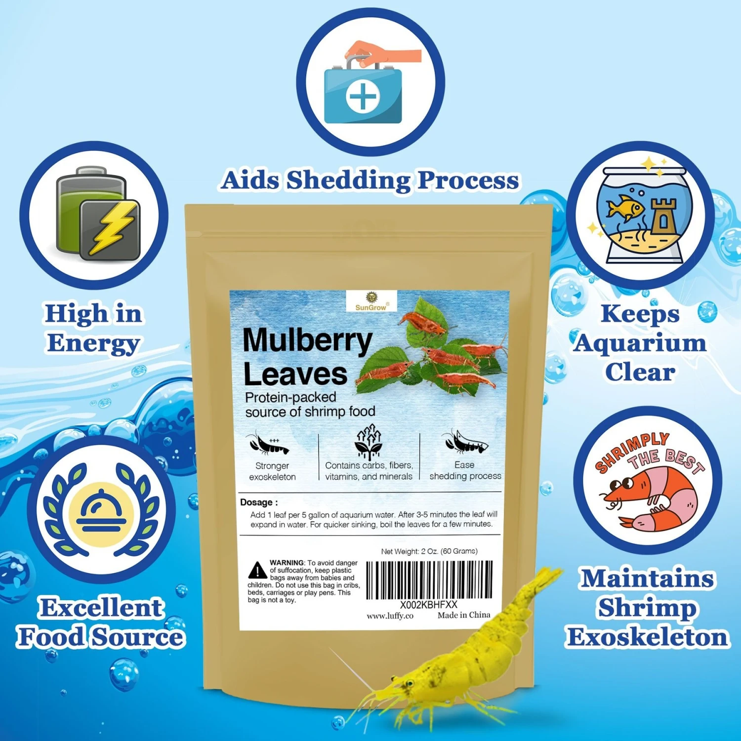 - Helps maintain the durability of your shrimp’s exoskeleton.