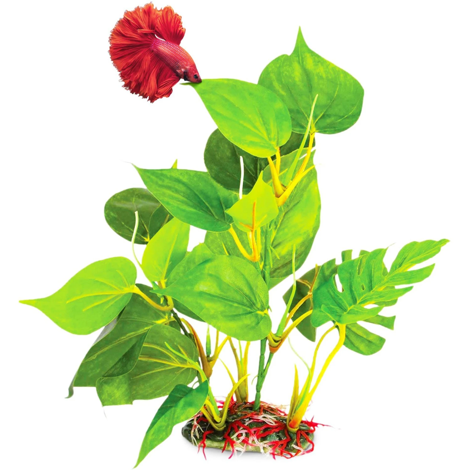 SunGrow Tall & Large Artificial Plastic Leaf Plants For Fish Aquarium Decoration & Reptile Hideout