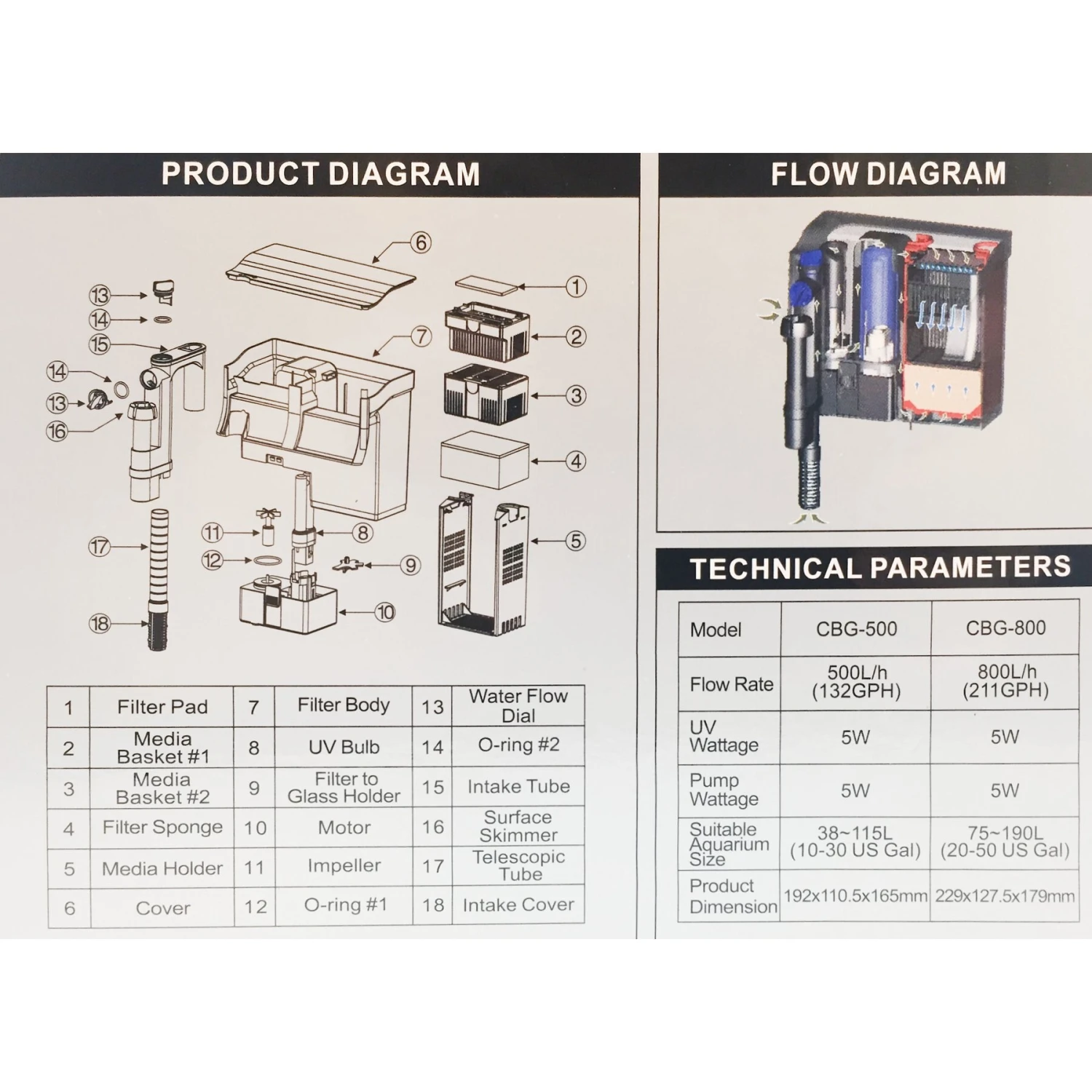 - Works with freshwater and saltwater aquariums and is energy-efficient; available in 132 and 211 gallons per hour capacities.