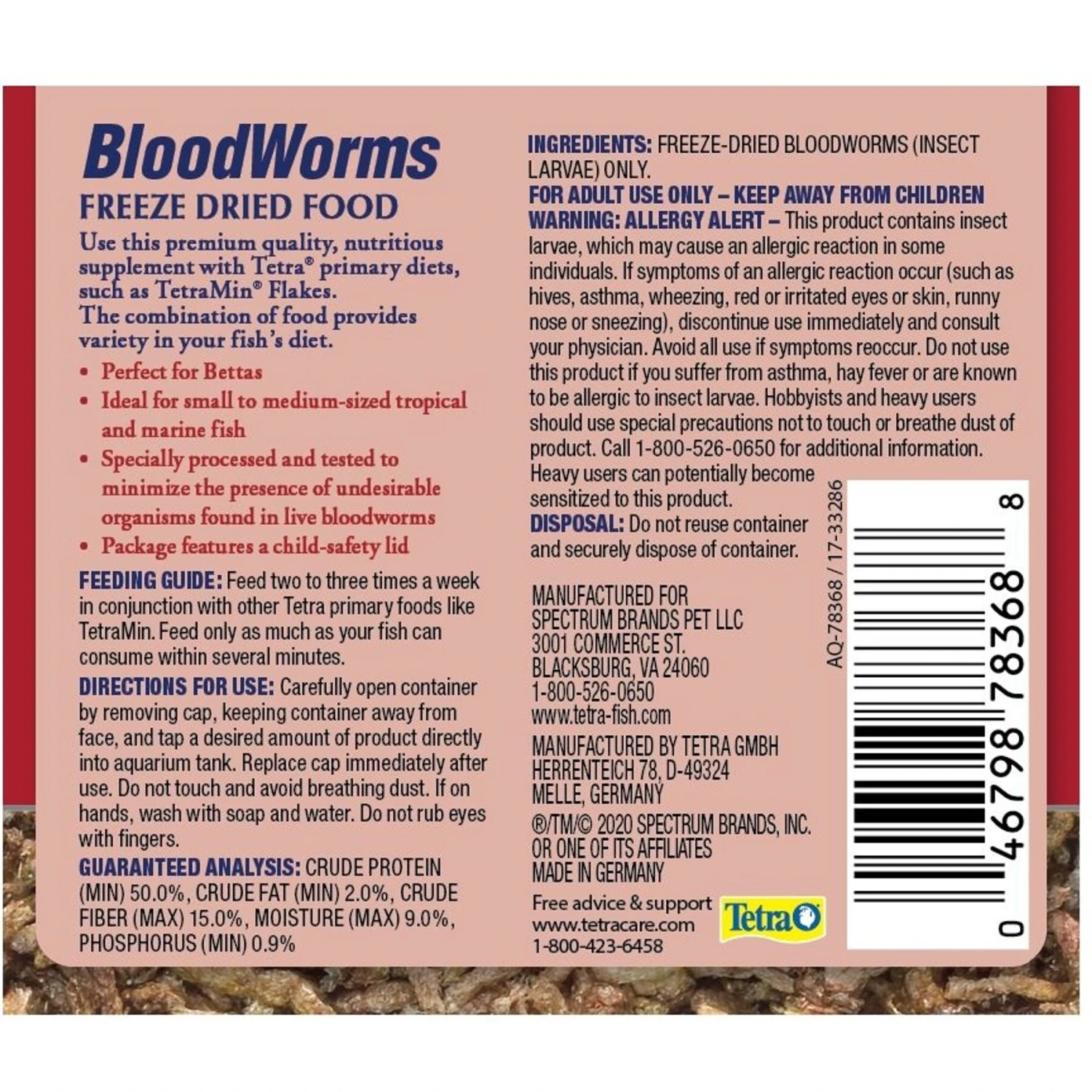 Tetra BloodWorms Freeze-Dried Fish Food, 0.25-oz Jar