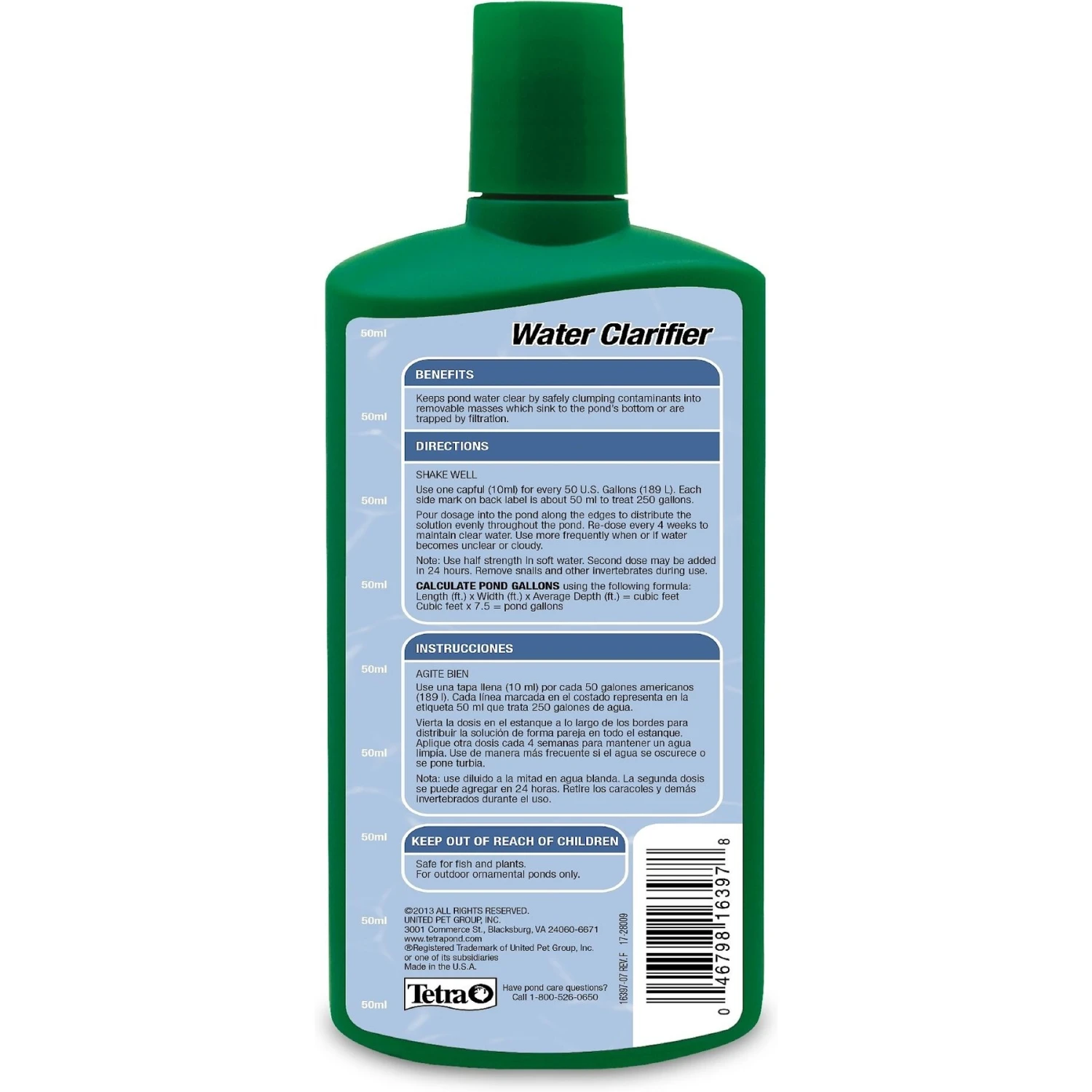 Clear cloudy pond water easily and quickly with Tetra Pond Clumping Water Clarifier. Cloudy pond conditions are caused by overfeeding, gravel sediment and other particles. Tetra Pond Clumping Water Clarifier clumps these particles together to form larger masses that sink to the bottom and can be removed by your pond filter, wet vaccuum or skimming net. It is safe for use with pond life and plants.