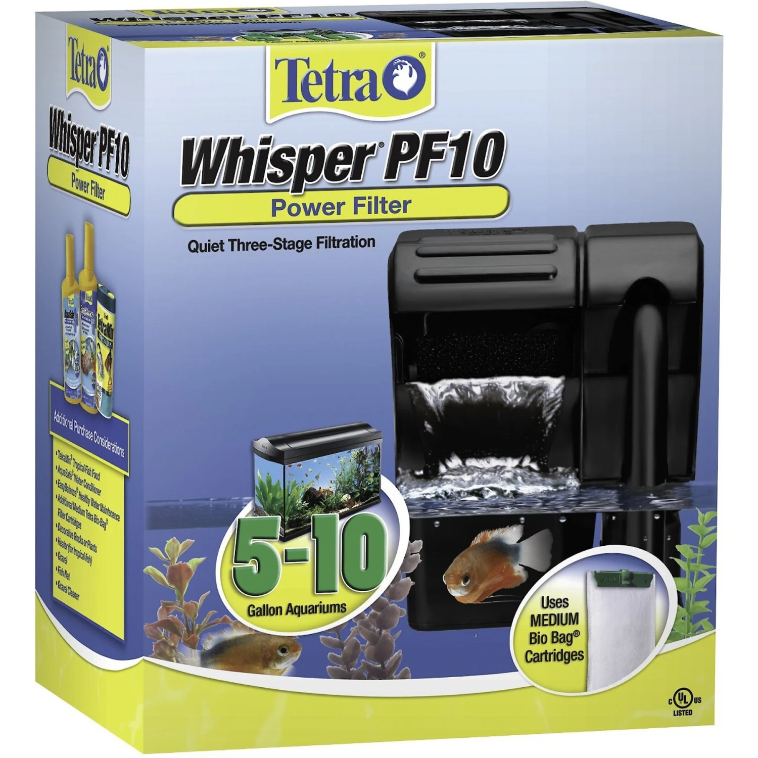Tetra Whisper Power Filter provides quiet, convenient, reliable filtration designed with simplicity and convenience in mind. This intuitive, filtration system is simple to set up—ready to go right out of the box with no priming required. It provides three-stage filtration, including mechanical, chemical and biological. The scientifically engineered water flow provides continuous flushing action to prevent debris buildup. And optimum outflow maximizes water agitation and oxygenation. Compatible with Tetra Bio-Bags for easy, reliable maintenance.