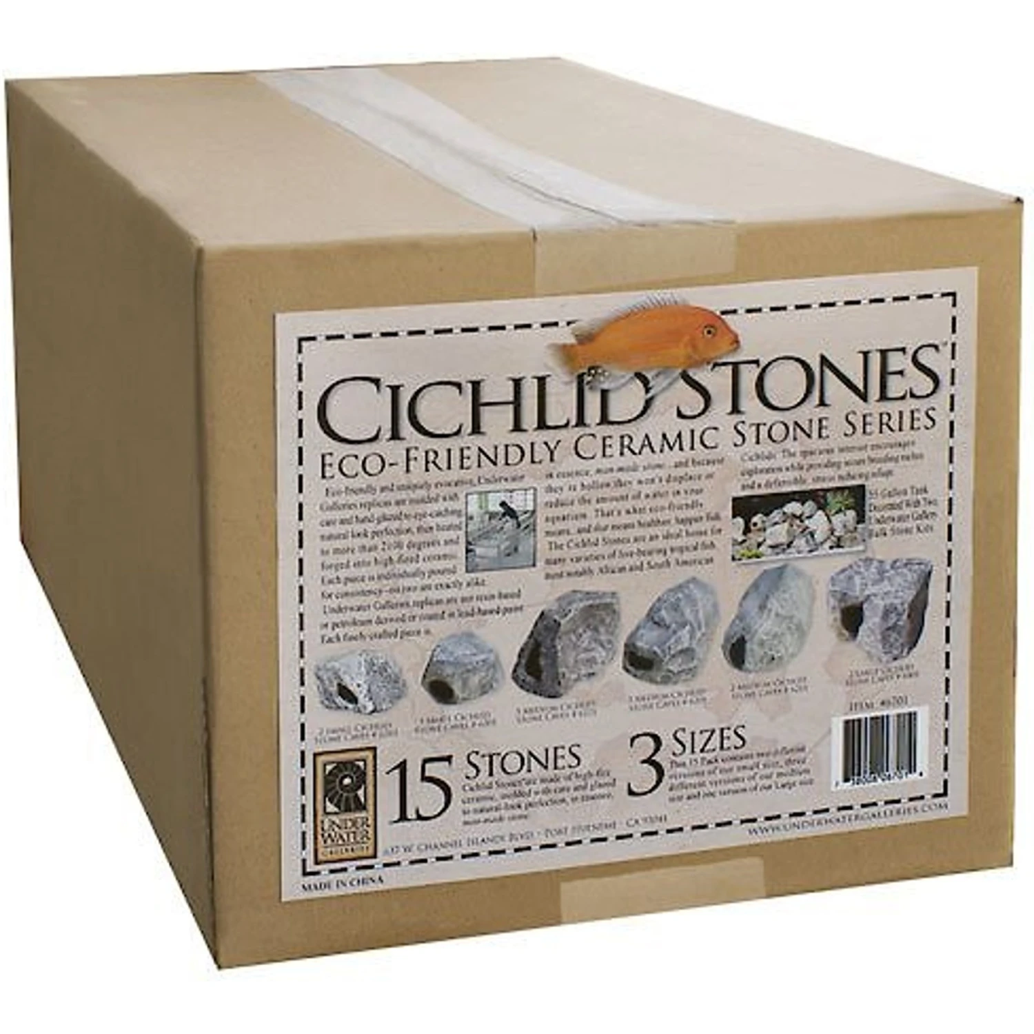 Underwater Galleries Assorted Cichlid Aquarium Stone Caves, 15 Count Box